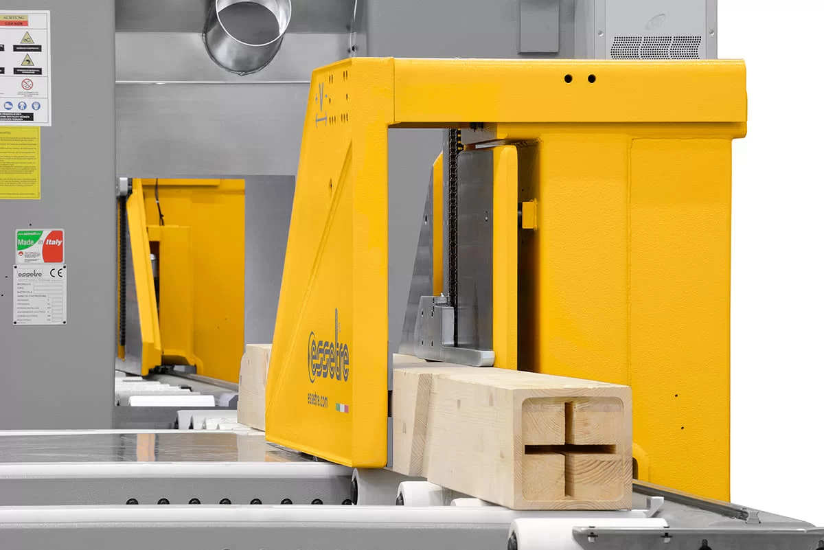 The machine is controlled by the new Essetre E-Live Software, with three-dimensional display of the workpiece and relative processing. Its versatility allows it to interface with the most well-known Cad Cam programs specific for wooden structures.