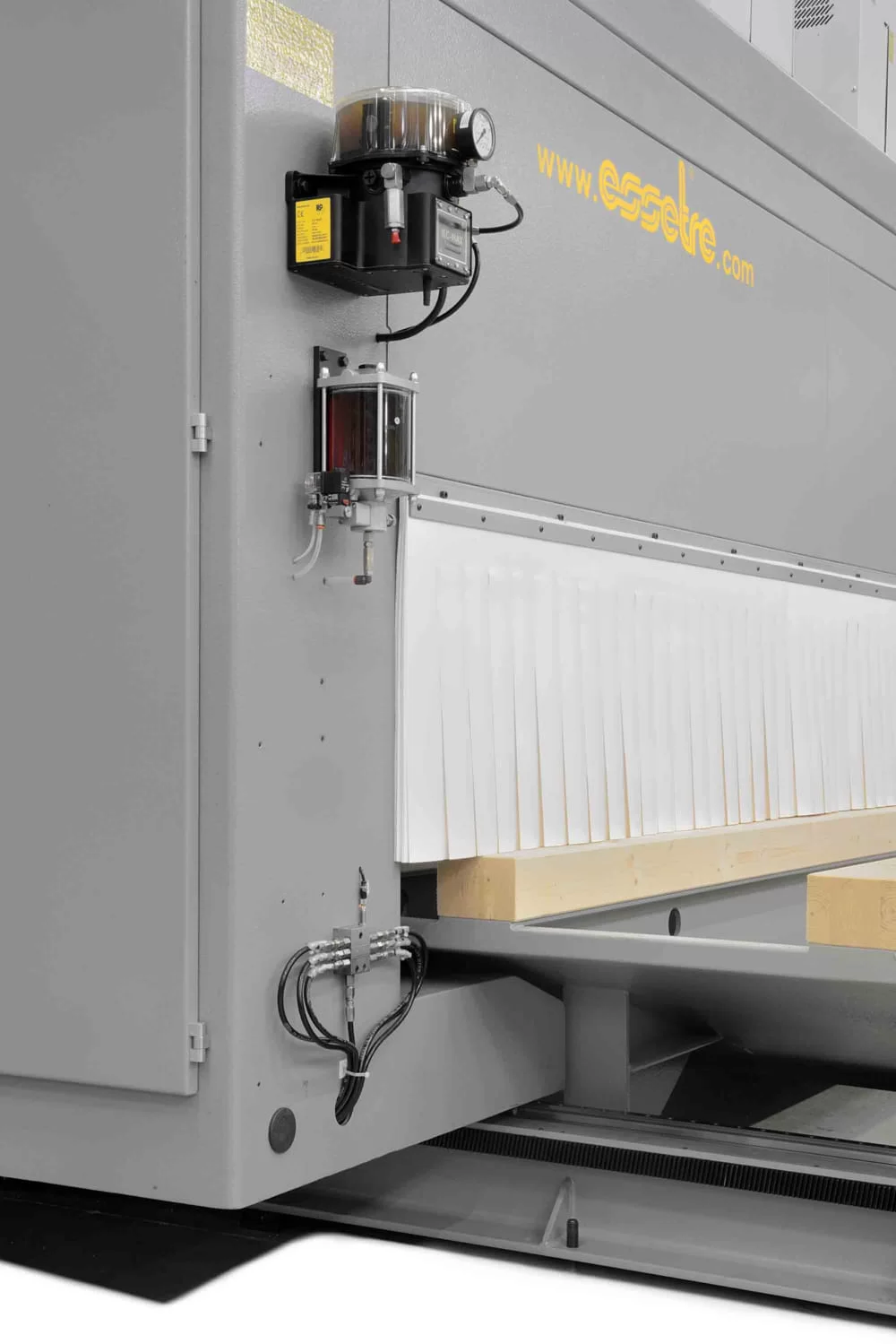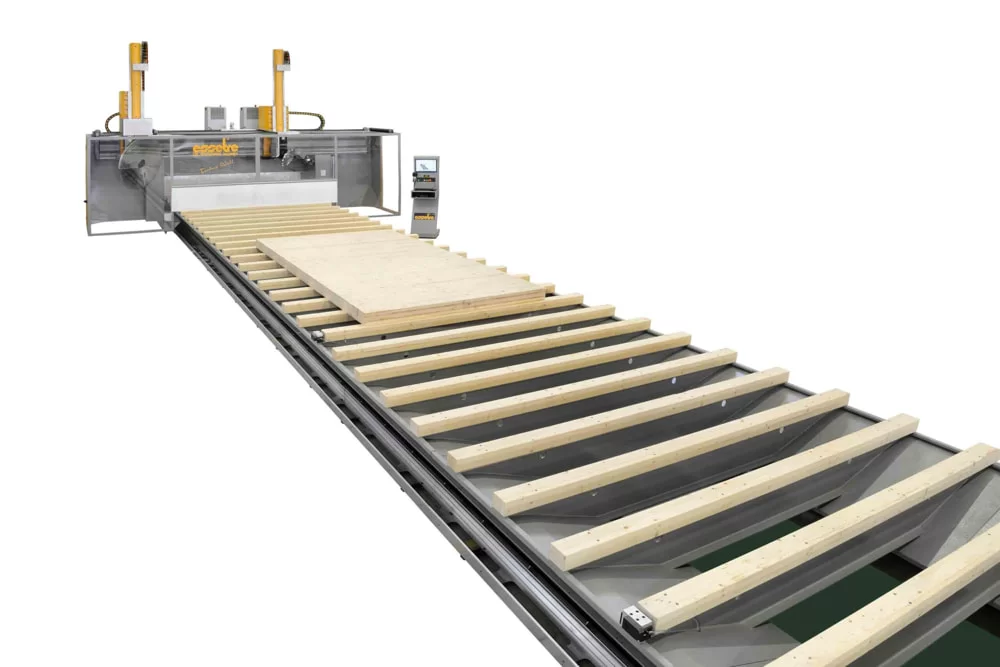 The machine is controlled by the new Essetre E-Live Software, with three-dimensional display of the workpiece and relative processing. Its versatility allows it to interface with the most well-known Cad Cam programs specific for wooden structures.