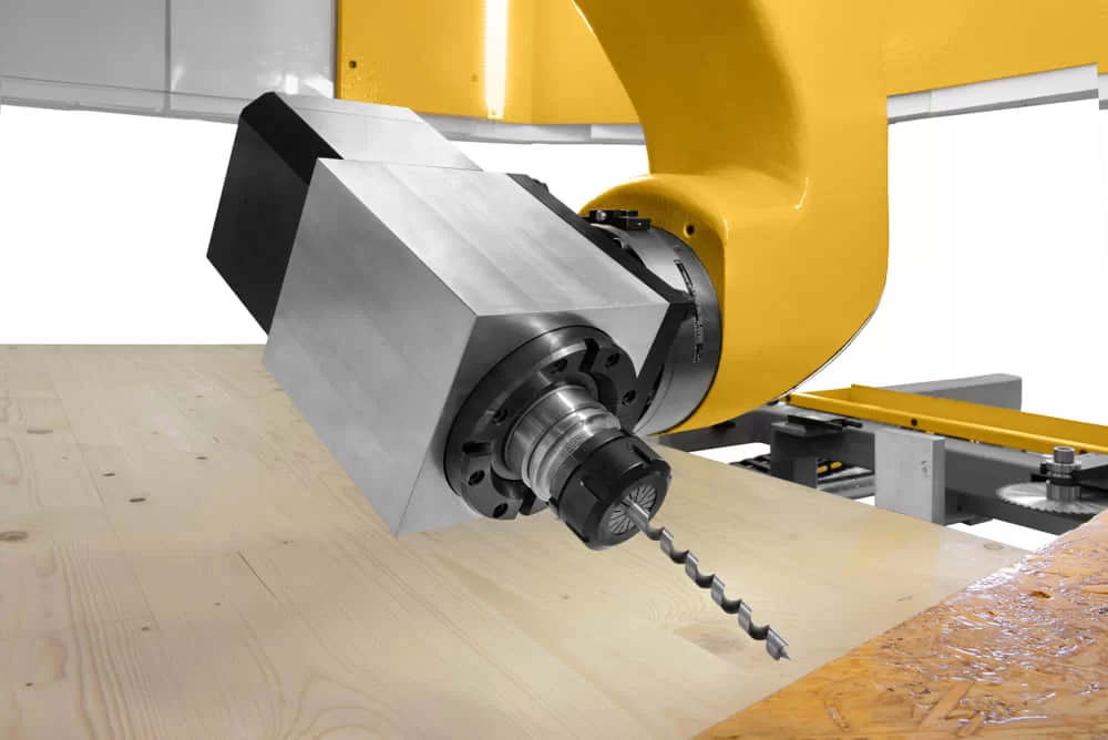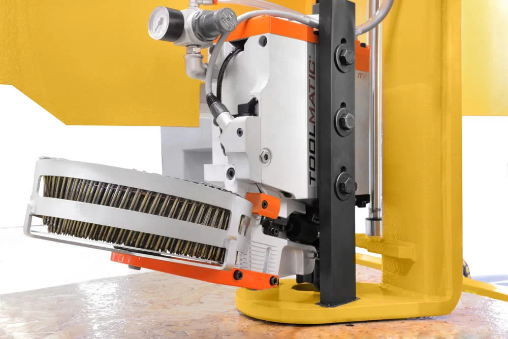 Integrated automatic group for stapling and nailing on the Z axis of the 5-axis head.