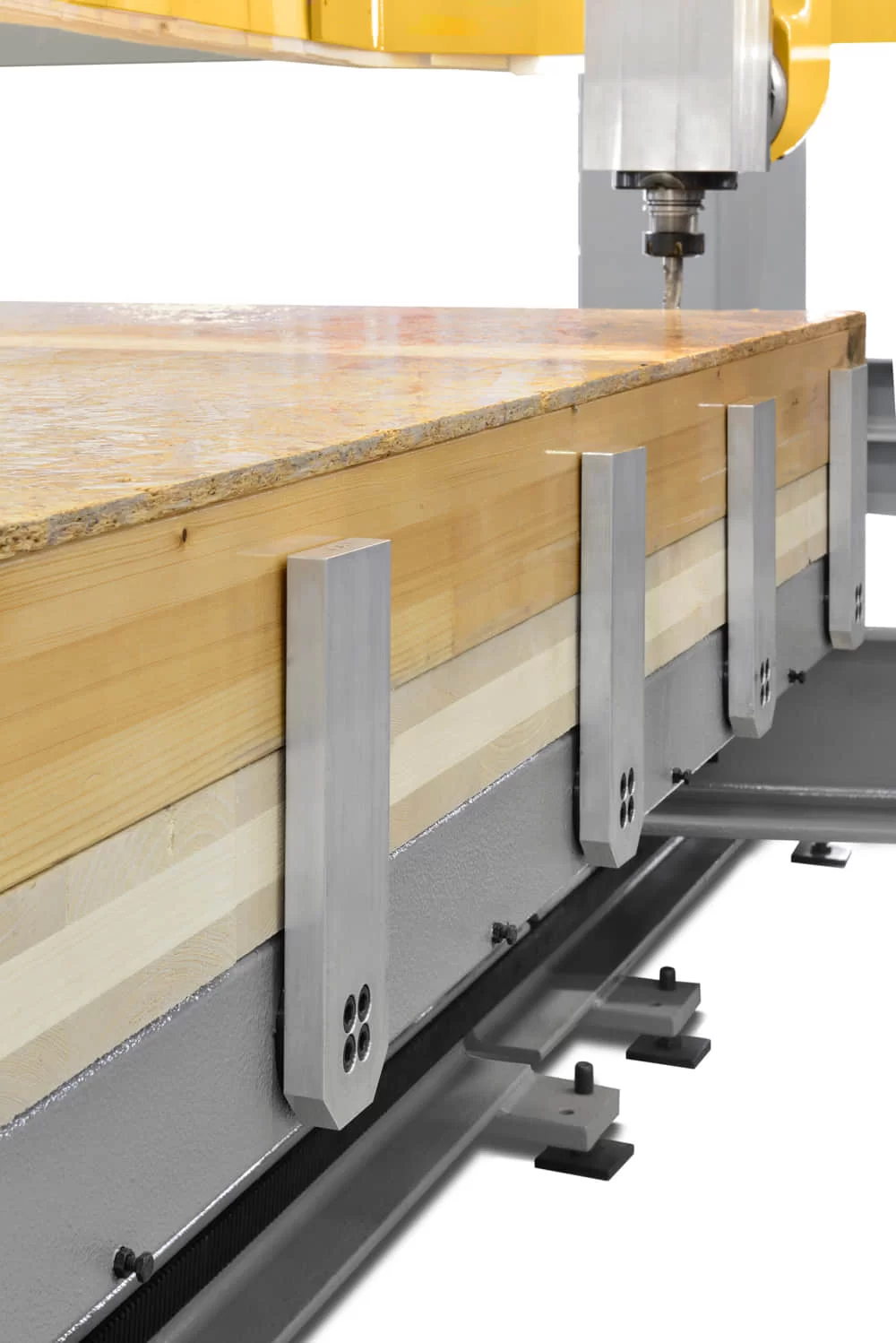 The machine is controlled by the new Essetre E-Live Software, with three-dimensional display of the workpiece and relative processing. Its versatility allows it to interface with the most well-known Cad Cam programs specific for wooden structures.