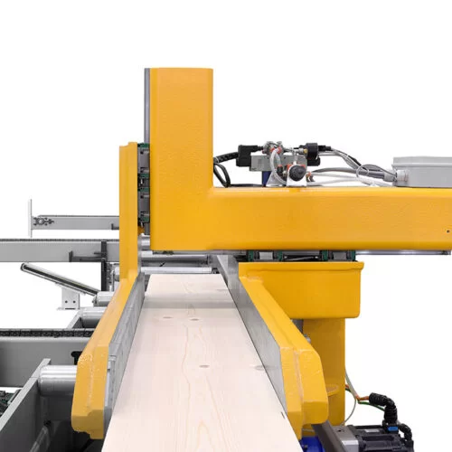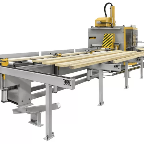 Additional loading area to process workpieces up to 13000 mm, consisting of 5 fixed supports on the machine structure equipped with motorized chains for the automatic loading of boards and beams on the loose rollers of the machine entry plan.