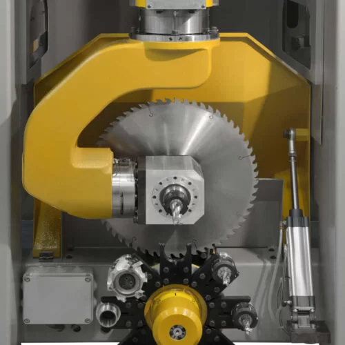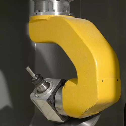 Patented milling head with 5 continuous interpolating axis for the processing of the 6 faces of the workpiece. Patented dual output motor with HSK63F tool holder.